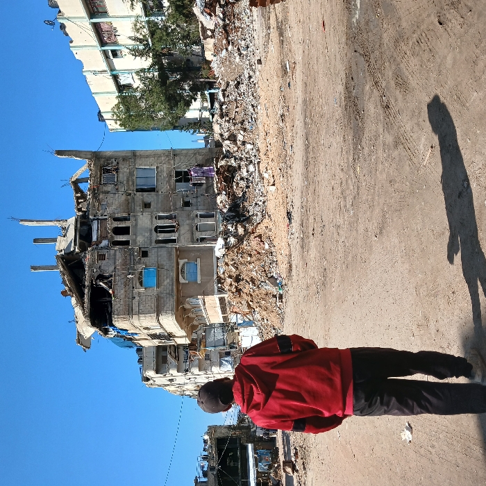 - "An individual walks across a dirt ground littered with debris in a damaged urban environment in Gaza City, Palestinian Territory, under a clear blue sky" by FM-lJnzj1, licensed under CC BY 4.0