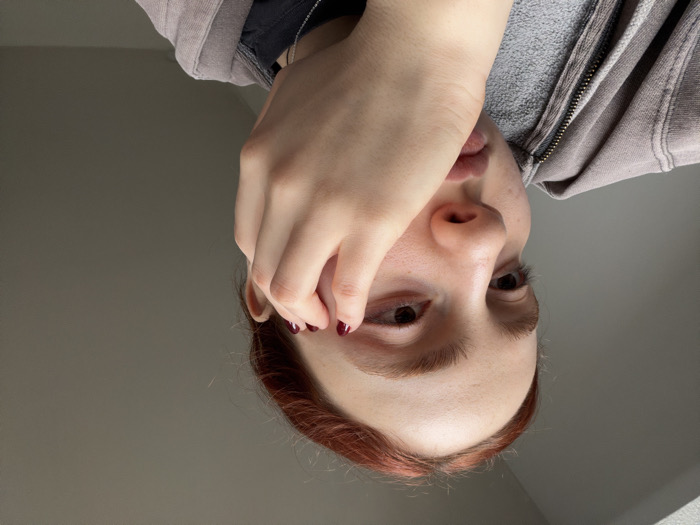 - "A close-up, low-angle indoor portrait captures an individual, appearing to be a young adult, with reddish-brown hair and a light skin tone" by FM-iVf172, licensed under CC BY 4.0