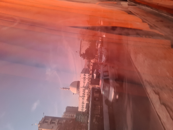 - "The image depicts an urban street scene in Sarouja Municipality, Syria, observed through a window partially obscured on the right by an orange-red reflection or curtain" by FM-9VsWL2, licensed under CC BY 4.0