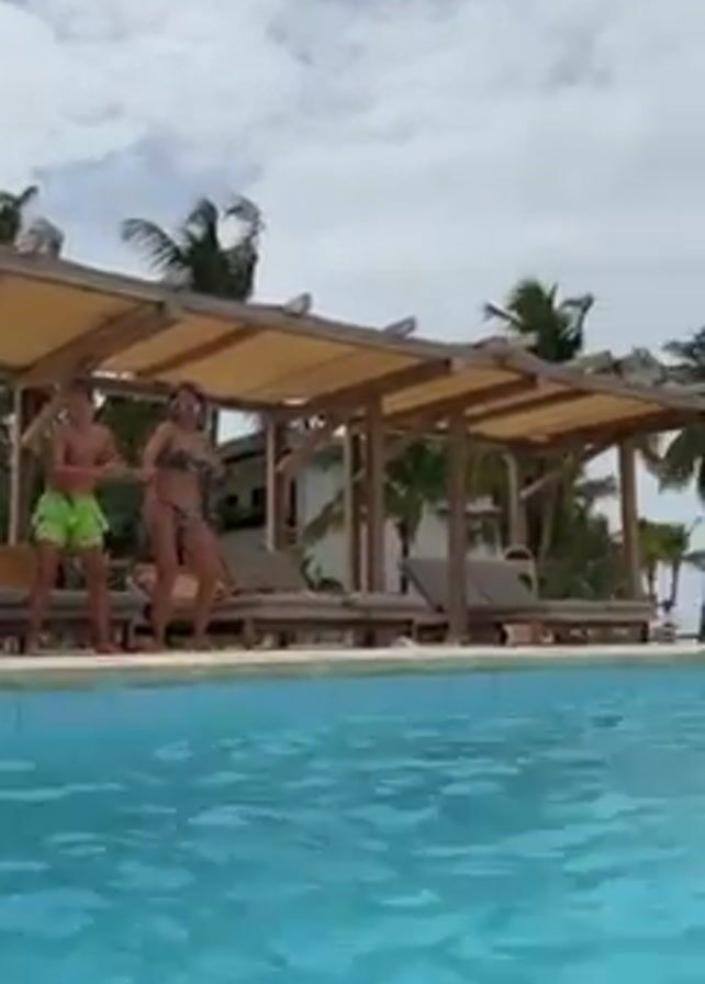 Here's a brief description of the video: The video shows a scene at a tropical resort pool