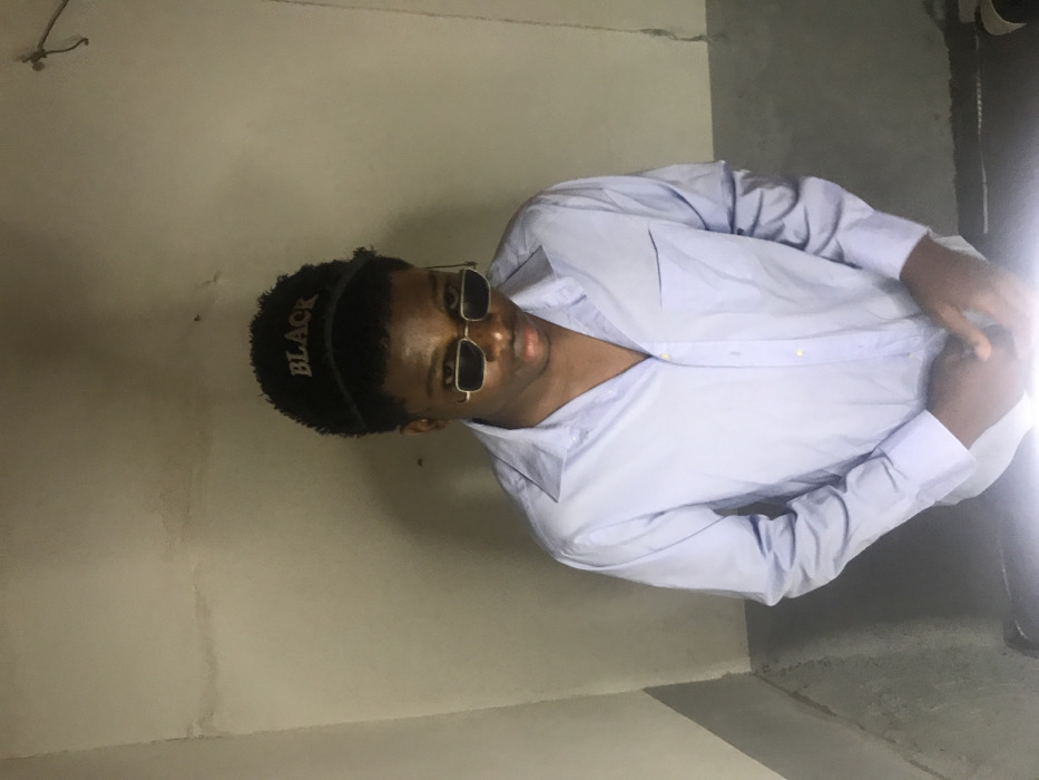 An individual, appearing to be a young adult male of dark complexion, stands in an indoor corner