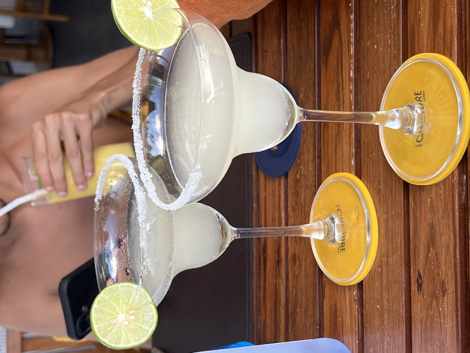 - "The image displays two frosted margarita glasses, each with a salted rim and a lime wheel garnish, positioned on yellow circular coasters" by FM-KB8Xj1, licensed under CC BY 4.0