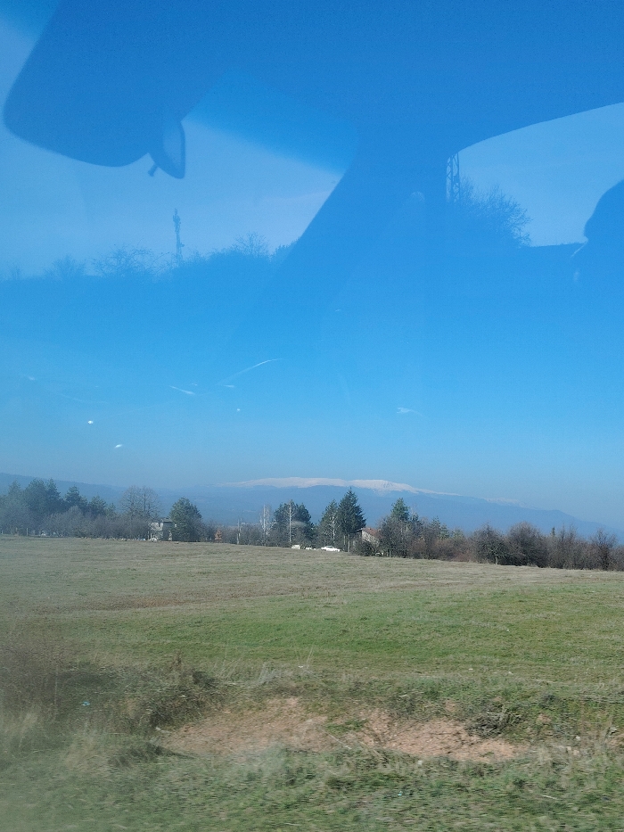 - "The image presents a panoramic view of a rural landscape near Baliovtsi, Bulgaria, captured from inside a vehicle, indicated by the reflection of a rearview mirror and the top edge of a windshield frame in the upper portion" by FM-gyP5C3, licensed under CC BY 4.0