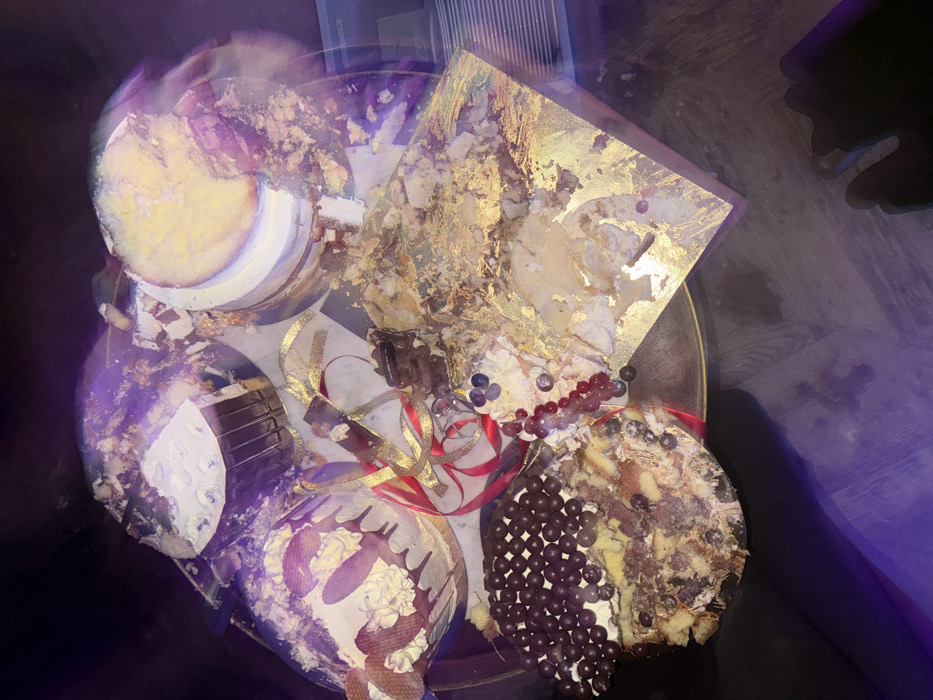 - "An overhead shot reveals multiple cakes on a round, golden tray" by FM-IXb3V2, licensed under CC BY 4.0
