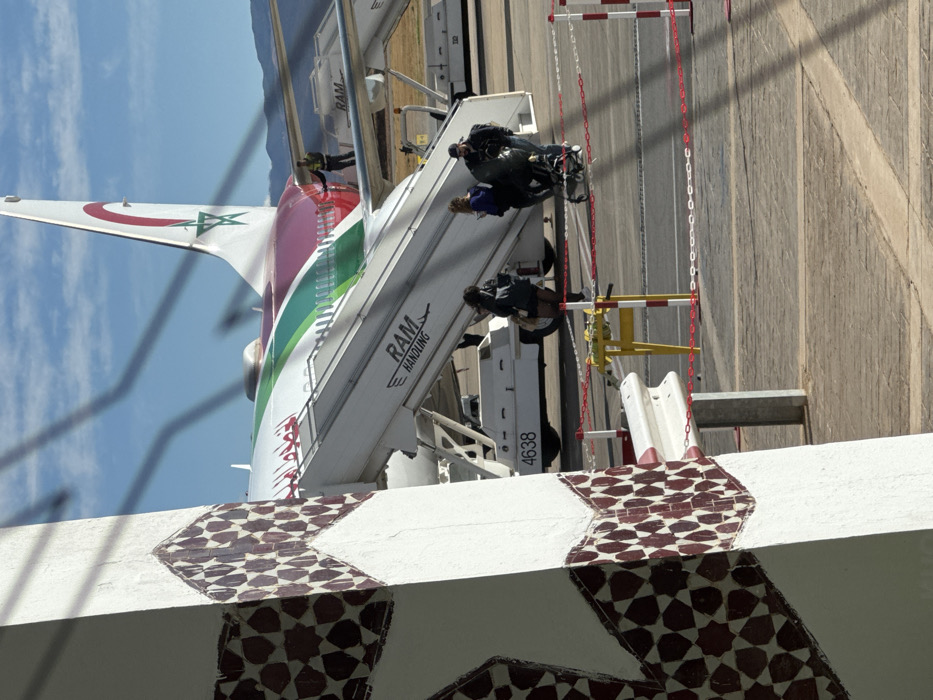 The image depicts an airport tarmac scene in Ouled Tayeb, Morocco