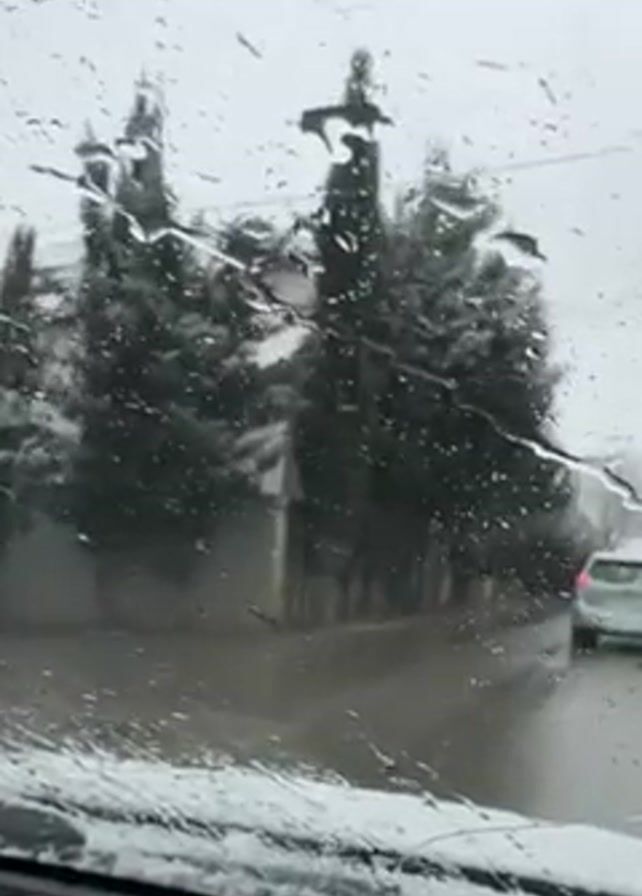 The video, taken from inside a vehicle, shows a street scene on a snowy day