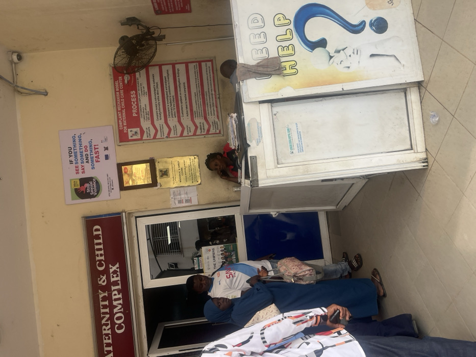 The image depicts the entrance area of the Maternity & Child Complex at General Hospital Idimu, located in Idimu, Nigeria