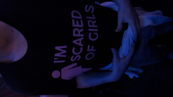- "A person wearing a black tank top with the pink words "I'M SCARED OF GIRLS" is seen" by FM-rzGlV2, licensed under CC BY 4.0