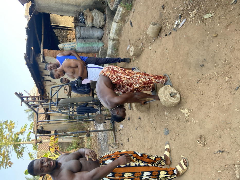 - "The scene depicts an outdoor, informal gym situated on reddish-brown dirt ground in Akwanga, Nigeria" by FM-d1xM23, licensed under CC BY 4.0