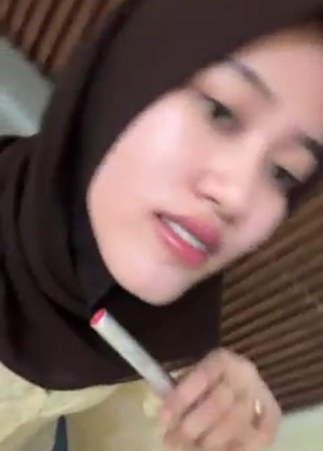 - "A woman wearing a dark brown hijab, a light yellow floral shirt, and blue jeans is holding a lip gloss or lip balm" by FM-2HdLF2, licensed under CC BY 4.0