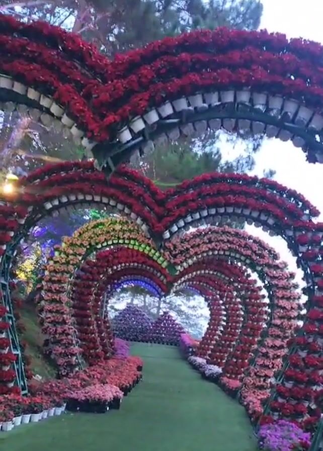 - "The video presents a view of a heart-shaped tunnel structure adorned with numerous potted flowers, creating a romantic and visually striking pathway" by FM-yj6ly1, licensed under CC BY 4.0