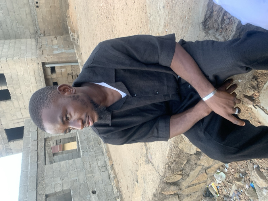 An adult male is depicted seated outdoors in Okene, Nigeria