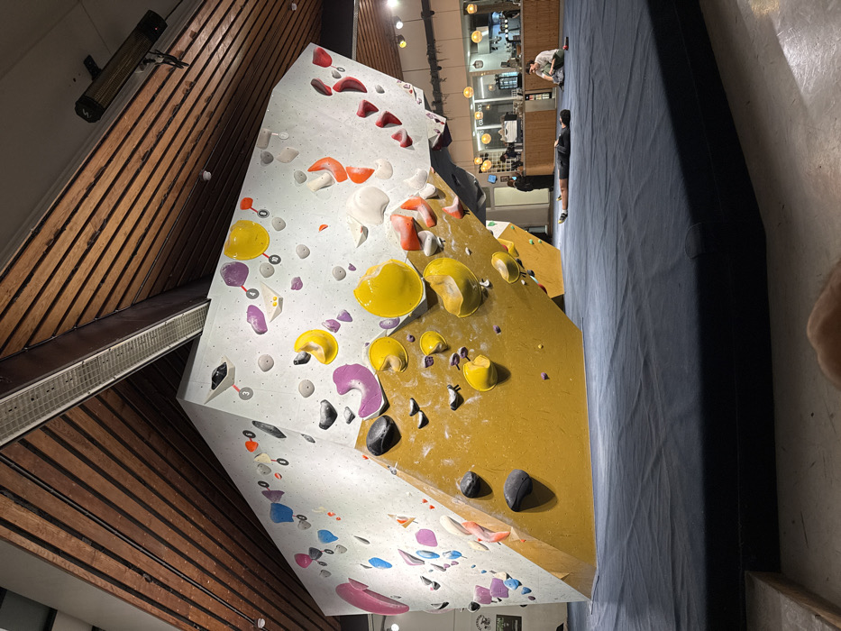 - "The image displays an indoor bouldering facility, specifically identified as De Klimmuur Rotterdam, Netherlands" by FM-rGlK02, licensed under CC BY 4.0