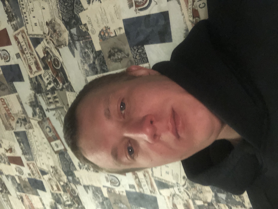 A man wearing a black hooded sweatshirt is looking at the camera