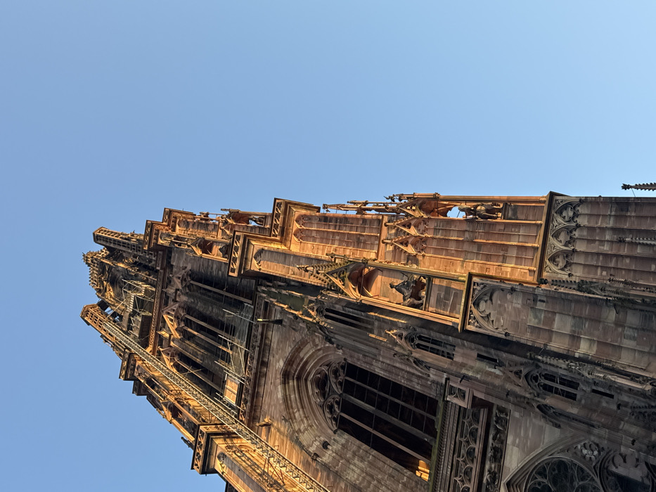 - "The image captures a detailed, upward perspective of the intricately carved spire and upper sections of the Cathédrale Notre-Dame de Strasbourg, located in Strasbourg, France" by FM-IL2Dl2, licensed under CC BY 4.0