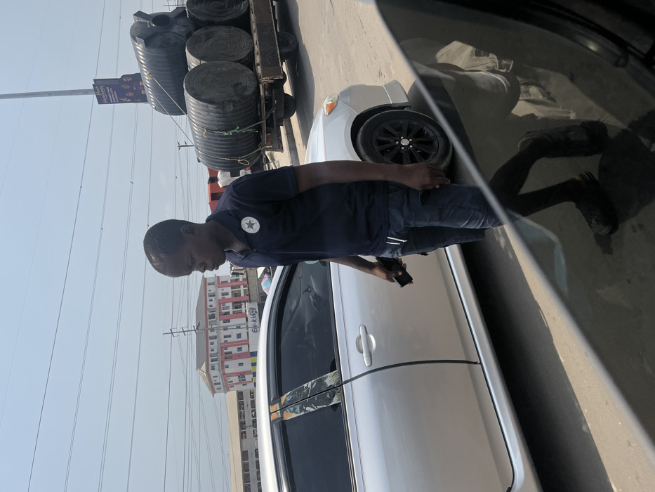 The image depicts an outdoor street scene in Jakande, Nigeria, under bright daylight with a clear sky