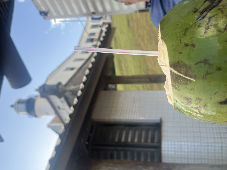 - "The image depicts a green coconut, partially cut at the top with a white and red striped straw inserted, in the foreground" by FM-21Qs12, licensed under CC BY 4.0