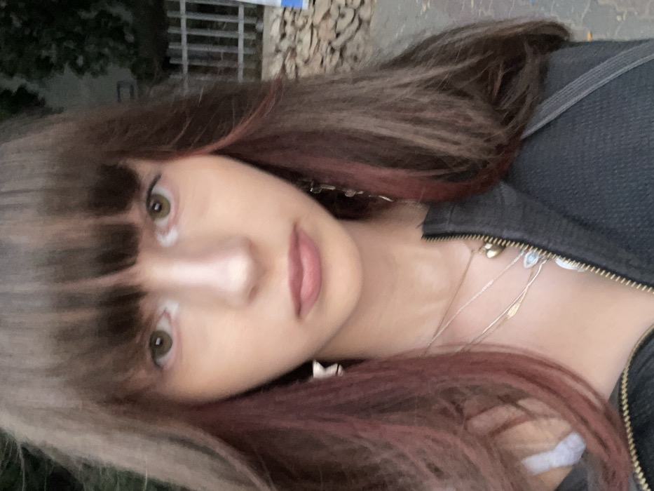 The image displays a close-up portrait of a young female, positioned outdoors in Raanana, Israel