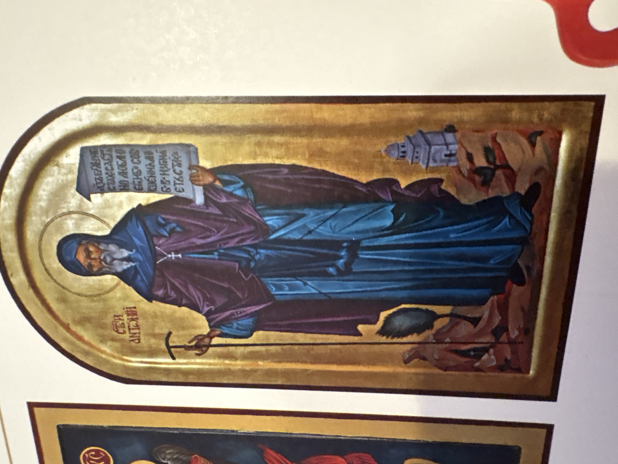 The image depicts an Orthodox Christian icon of Saint Anthony