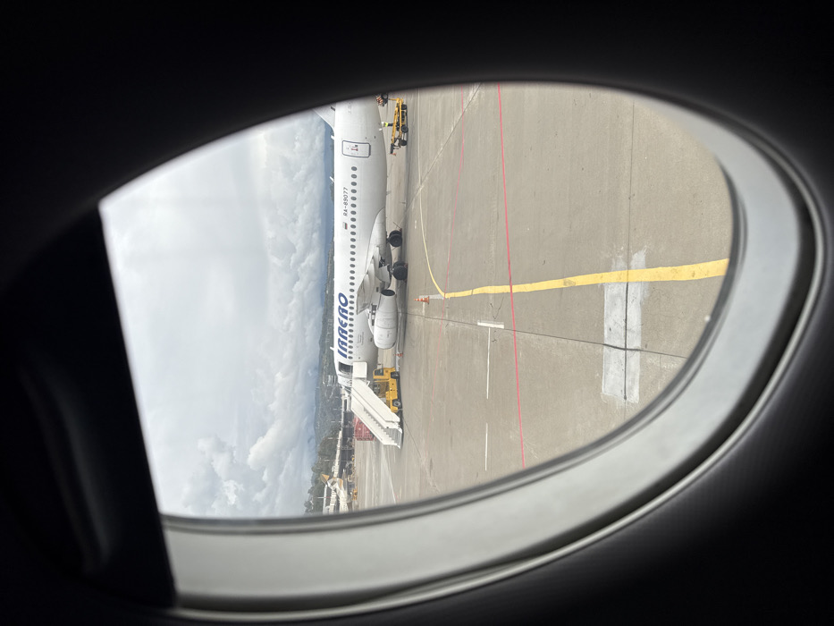 - "The image captures an outdoor airport scene viewed through an oval aircraft window" by FM-HTgwN2, licensed under CC BY 4.0
