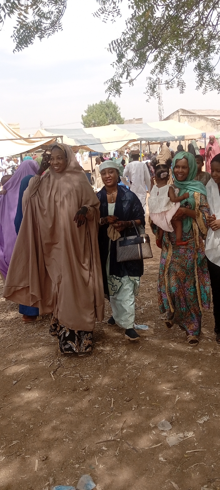 The image captures an outdoor gathering in Kano, Nigeria, featuring several individuals