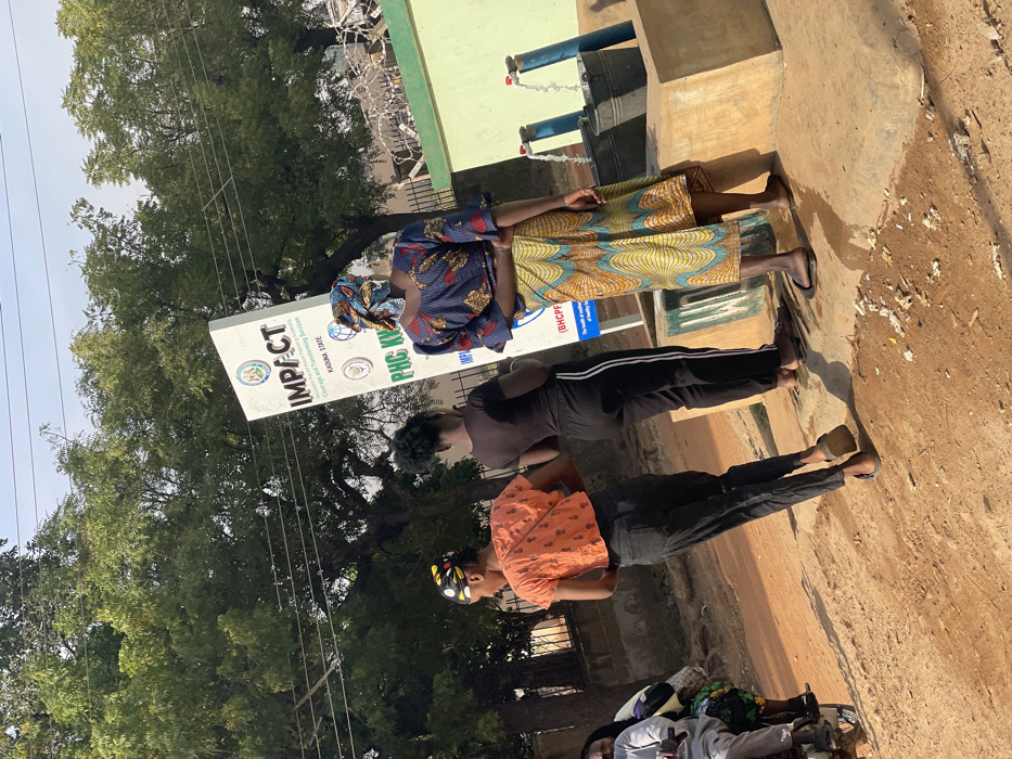 This image depicts an outdoor scene in Muchiya, Kaduna State, Nigeria, at a Primary Healthcare Center (PHC KY)