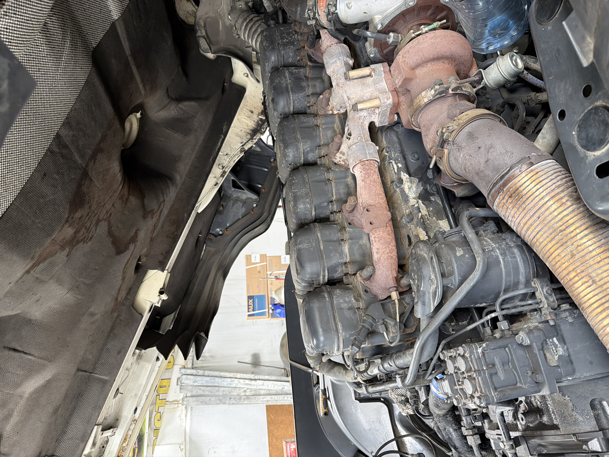 - "The image displays the engine compartment of a heavy-duty vehicle, likely a truck, with its hood raised, located within a garage or workshop in Chirpan, Bulgaria" by FM-up5lz2, licensed under CC BY 4.0