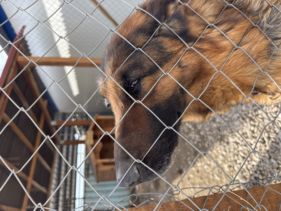 A German Shepherd dog is observed within an outdoor animal enclosure in the city of Unknown, Unknown