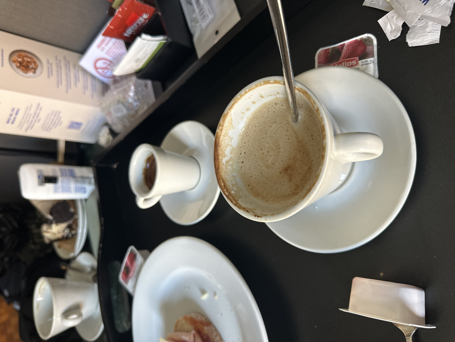 - "The image presents an indoor scene within a hospitality establishment in València, Spain, depicting a black serving tray holding breakfast or coffee items" by FM-71brN2, licensed under CC BY 4.0