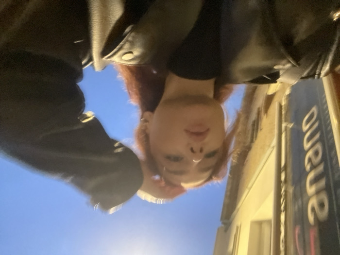 - "A young individual with reddish-brown hair, wearing a black top and a black leather jacket, is depicted in a low-angle, head-and-shoulders perspective" by FM-iVf172, licensed under CC BY 4.0
