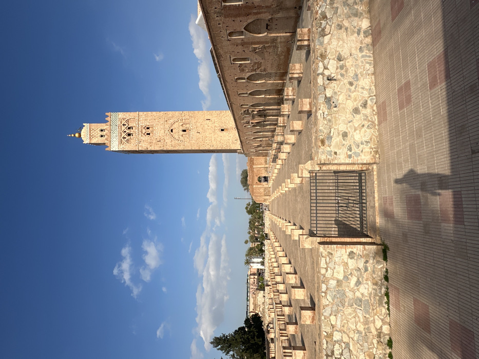 - "An outdoor, eye-level, wide-angle shot captures the Koutoubia Minaret and its surrounding historical grounds in Marrakesh, Morocco, under a bright blue sky with scattered white clouds" by FM-uegzv2, licensed under CC BY 4.0