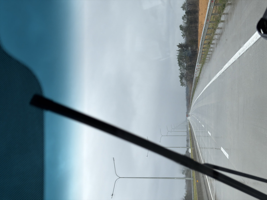 - "The image captures a multi-lane highway scene, viewed from inside a vehicle through a wet windshield" by FM-iVf172, licensed under CC BY 4.0