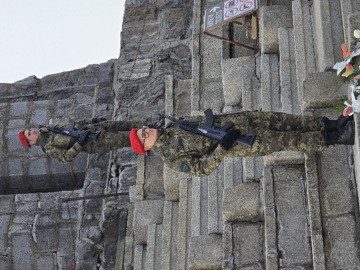- "Two uniformed male individuals stand guard on the rough-hewn stone steps of the Shipka Monument, located at Shipka Pass near the city of Shipka, Bulgaria" by FM-IYQQn1, licensed under CC BY 4.0