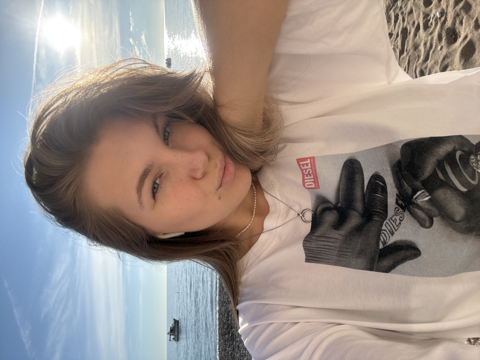 A young female is depicted in a selfie on a beach in Sutomore, Montenegro