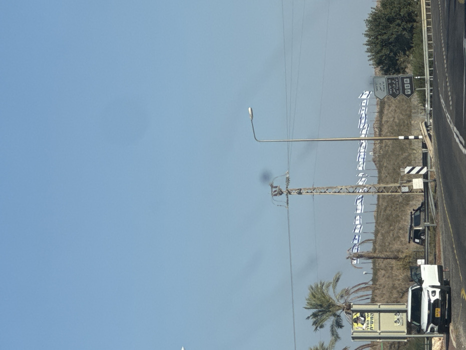 The image displays a roadside scene on a clear, sunny day within the Gilboa Regional Council, Israel