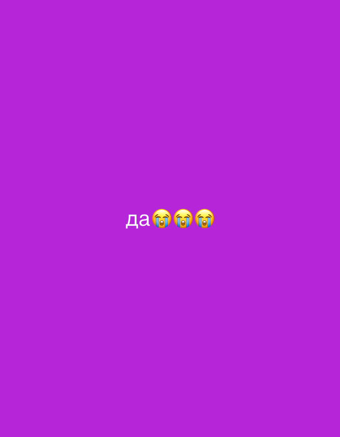 A purple background displays the Cyrillic letters "да" followed by three crying face emojis. The text and emojis are horizontally aligned near the center of the frame. The text and emojis are in white.