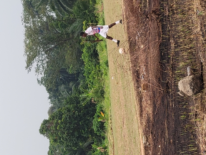 An outdoor scene in Awka, Nigeria, depicts a partially cleared field under an overcast sky