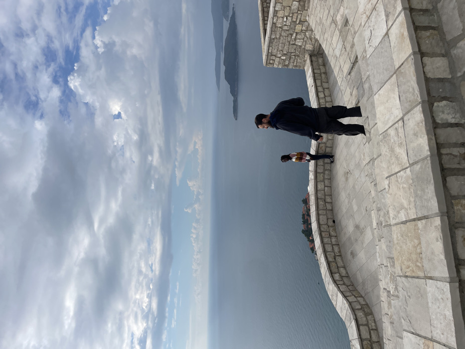 - "The image displays an elevated stone terrace viewpoint in Sveti Stefan, Montenegro, overlooking the Adriatic Sea under a partly cloudy sky" by FM-oln9s2, licensed under CC BY 4.0