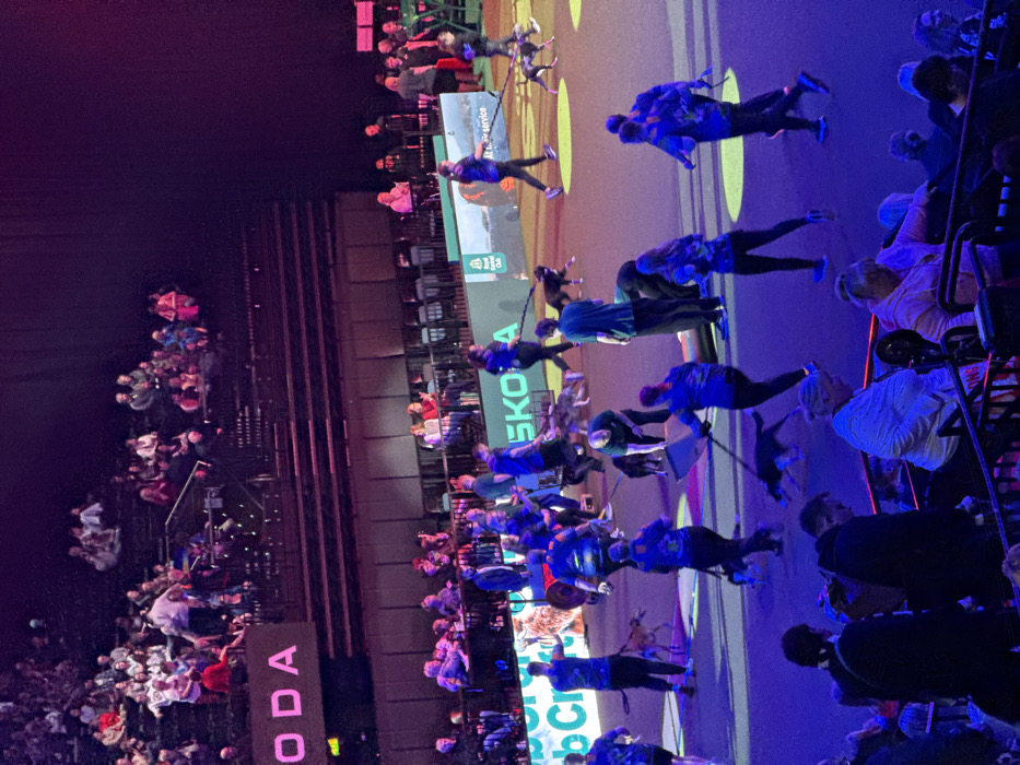 This image depicts an indoor arena event at the Resorts World Arena, National Exhibition Centre (NEC), Metropolitan Borough of Solihull, United Kingdom