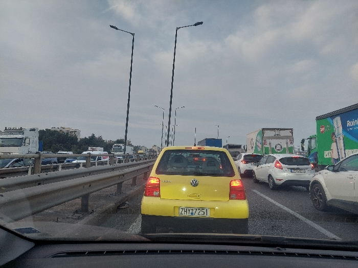 - "The image depicts a congested multi-lane highway in Athens, Greece, viewed from the driver's perspective inside a vehicle looking forward through the windshield" by FM-b94Yk2, licensed under CC BY 4.0