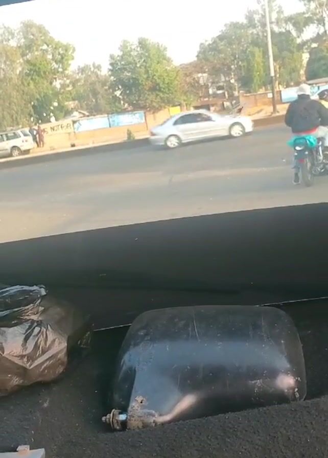 The video appears to be filmed from inside a car, focusing on the dashboard and the view through the windshield