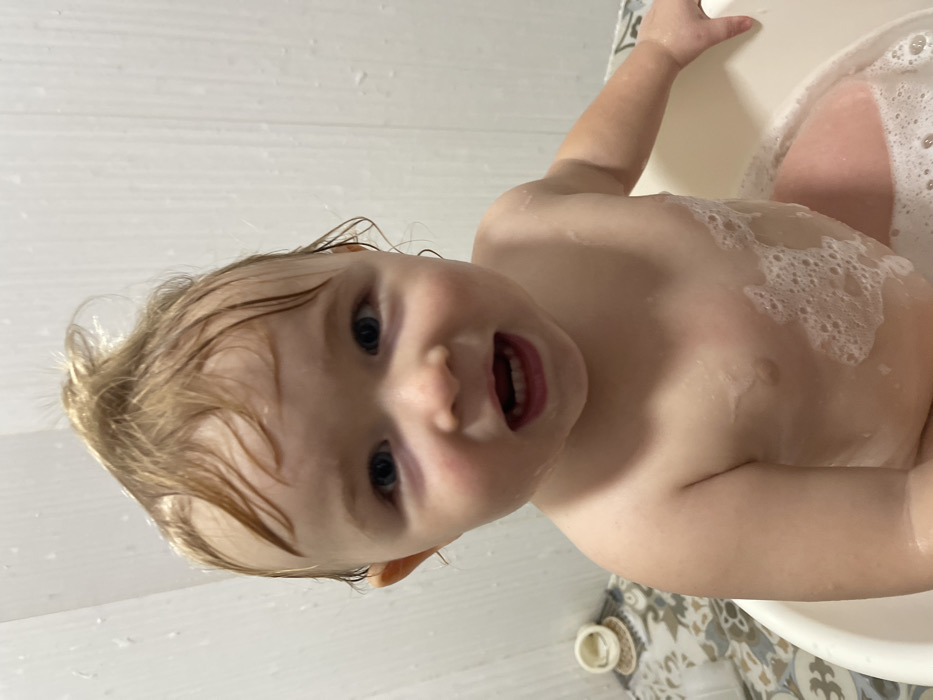 - "An indoor scene depicts a light-skinned infant engaged in a bath" by FM-oJoph1, licensed under CC BY 4.0
