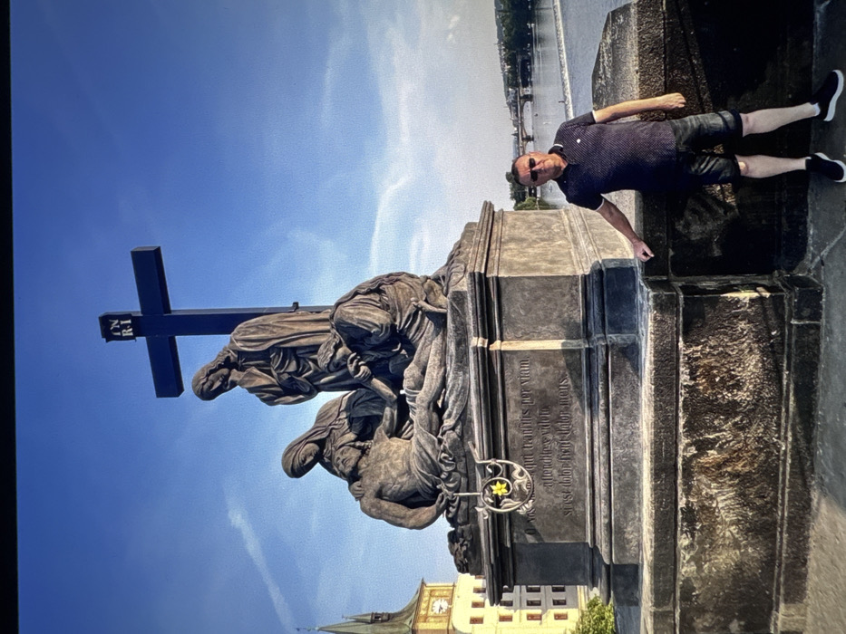 - "The image depicts an outdoor scene on the Charles Bridge in Prague, Czech Republic, under a clear blue sky with faint wispy clouds" by FM-m9os33, licensed under CC BY 4.0