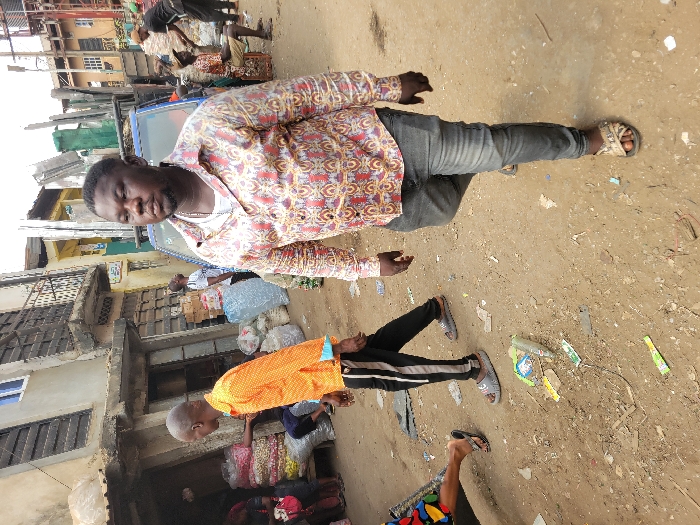 The image portrays an active street market scene within a commercial area of Onitsha, Nigeria