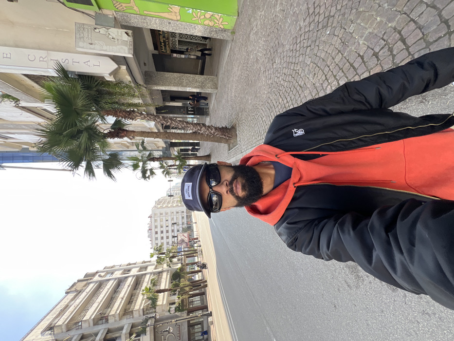 A male individual takes a selfie on Boulevard Mohamed V in Tangier, Morocco