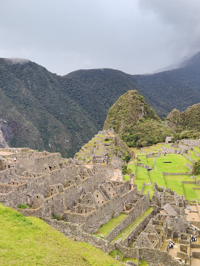 Machu Picchu, the ancient Inca citadel, sprawls across a mountain landscape