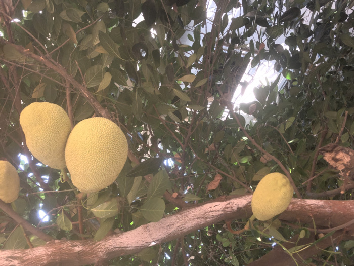 The scene depicts a jackfruit tree located in Ifitedunu, Nigeria