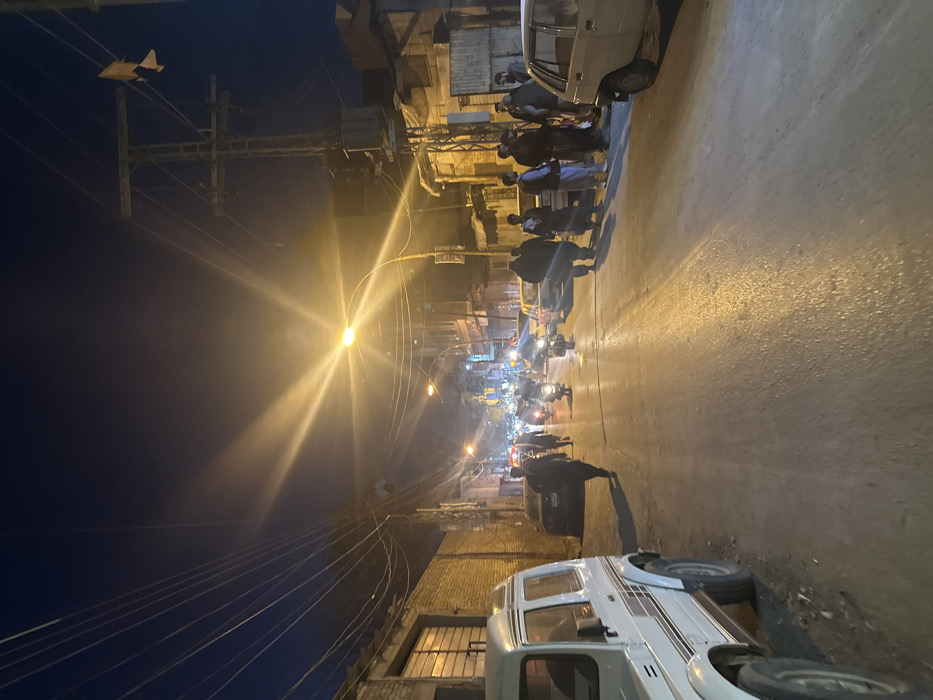 This image captures a nighttime street scene in Quetta City Tehsil, Pakistan