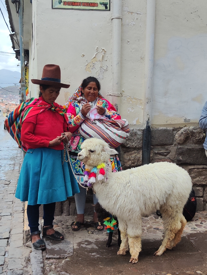 - "The image depicts two indigenous Peruvian women and two alpacas on a cobblestone street in Cuzco, Peru" by FM-20kwN2, licensed under CC BY 4.0