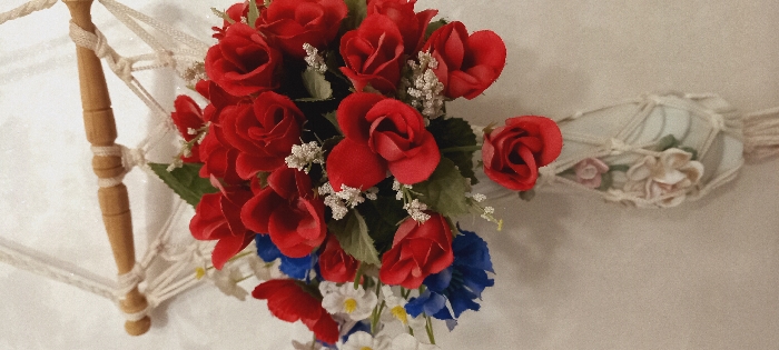 - "A floral arrangement features red roses, blue, and white flowers" by FM-MM3Sy2, licensed under CC BY 4.0